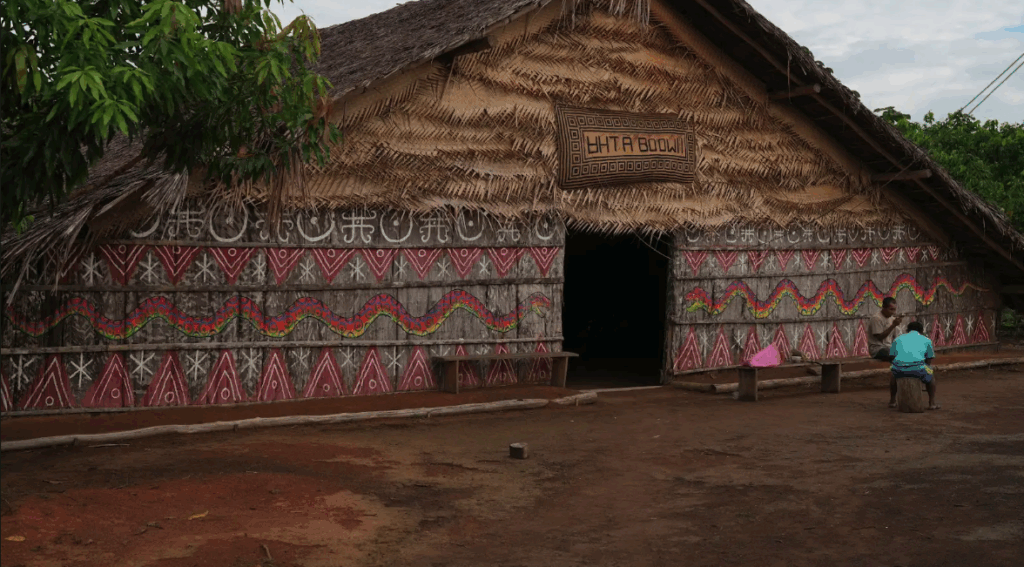 O encontro entre clãs antigos foi importante para pensar juntos como atravessar o presente e construir o futuro. O reencontro histórico entre lideranças antigas, a escuta das populações locais e a construção, de forma coletiva, de diretrizes para políticas públicas e projetos voltados à valorização dos modos de vida indígenas e à consolidação da sociobioeconomia na região. Os parentes vindos da Colômbia partilharam cantos e saberes. “Esse reencontro nos abençoou e fortaleceu, direcionando nossas vibrações para que futuras gerações tenham uma visão bem clara, que eles possam conhecer o ponto forte, o ponto negativo para poder caminhar nesta terra.”, conta Bu’ú. A força do encontro e dos cantos fez a chuva cair, o rio encher e o barco passar.