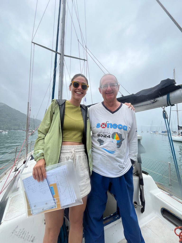 Pelo PAFE, Bianca fez uma formação curta (um final de semana), mas intensa. Em Ubatuba, o tio Spinelli é famoso por fazer a travessia Brasil-África e África-Brasil, e ministrou o curso de navegação à moda antiga. “O tio Spinelli tem uma navegação que não depende só de eletrônicos, usa métodos mais antigos, com carta náutica e bússola”, explica sobre o instrutor que a inspirou. “Não depender só de eletrônicos é um ponto positivo, que dá mais autonomia.”