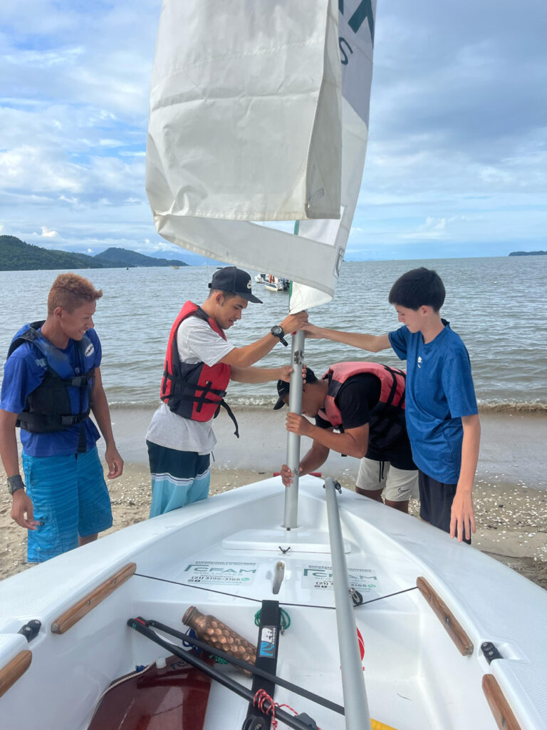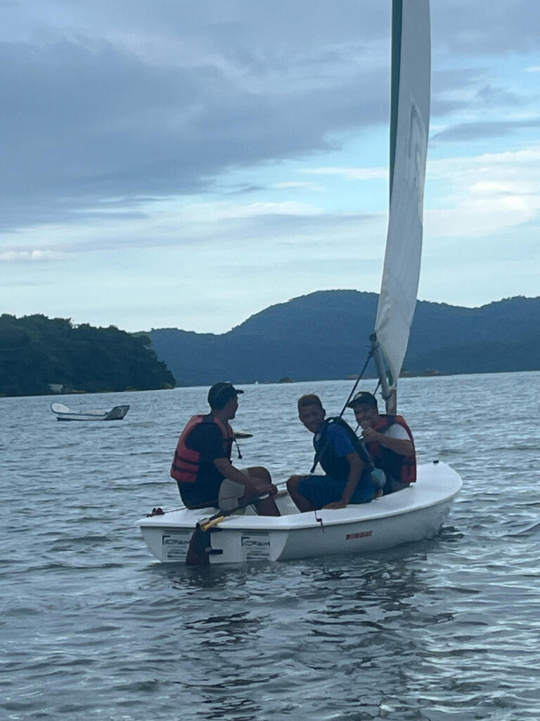 “Tivemos aulas teóricas usando o espaço do ITAE (Instituto Trilha da Arte e Educação), que cedeu sala de aula equipada. Das teorias, aplicamos na prática, porque, à princípio, era só teoria, mas vendo a turma, entendi que se continuasse falando, não ia dar em nada. Então, fizemos as teóricas como prometido ao PAFE, mas as quatro últimas foram totalmente práticas, no barco. Cada um começou comigo, mas foi ganhando autonomia e navegando sozinho – foi muito bacana”.