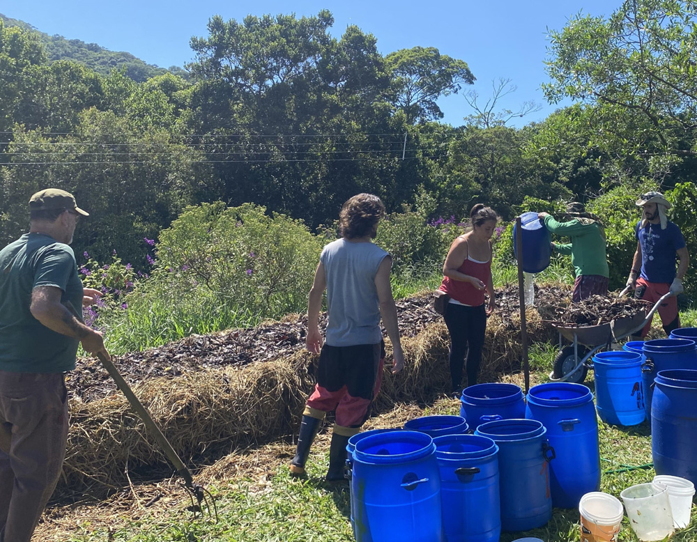 “Com a urgência de promover uma transição agroecológica, fortalecendo a agricultura familiar e os territórios, surgiu em 2019 a ideia de cultivar alimentos sem veneno, gerar renda para as famílias agricultoras e, ao mesmo tempo, regenerar os biomas com sistemas agroflorestais. Quem adere aos planos de cestas no modelo CSA é convidado a ser mais do que consumidor: é coagricultor, participando do planejamento e dos plantios nos mutirões, mobilizando assim pessoas para somar às lutas em defesa desses territórios e da agroecologia”, conta Cíntia.
