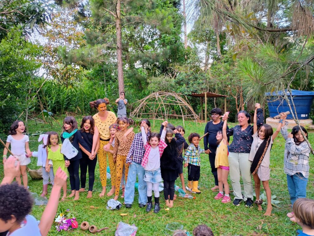 Ela complementa: “Se a gente pensar que cultura vem desse cultivo e de tudo que escolhemos e aprendemos a fazer – a educação é cultura. Nós criamos um jeito, estamos aí nesse processo de revolucionar, de fazer diferente, de resgatar o que estava lá atrás que era importante”. O Cria Encena materializa essa visão, tornando a lei que inclui a cultura afro-brasileira e indígena no currículo escolar uma vivência orgânica, fluida e pulsante, impulsionada pela curiosidade das crianças.