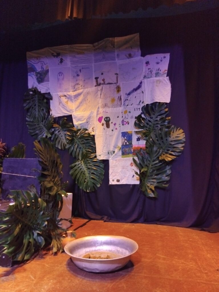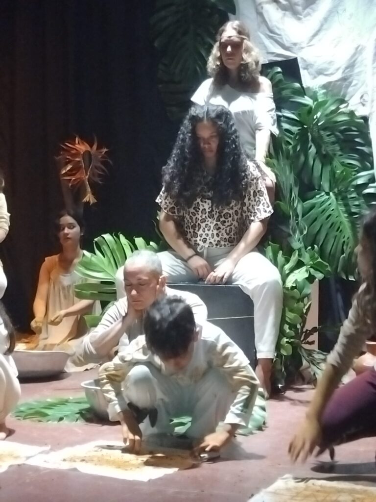 Já o espetáculo do fim deste ano, intitulado “Já Dizia a Minha Avó: Cosmologias Afroameríndias”, foi totalmente demandado pelo grupo. As crianças pediram uma peça contada por avós, que reunisse diversas culturas populares. Artistas e familiares foram convidados a contribuir, trazendo narrativas como a origem africana do tambor, a história iorubá de como os ibêjis enganaram a morte (Ikú), e a cultura Mebengokre sobre a chegada dos humanos na terra a partir do buraco do tatu. A peça, que será apresentada na Casa de Cultura no dia 29 de novembro, encerra com a noção do povo indígena Huni Kuin dos 5 tempos históricos. Segundo estes, nos encontramos atualmente na era da troca de saberes entre gerações e diferentes culturas.