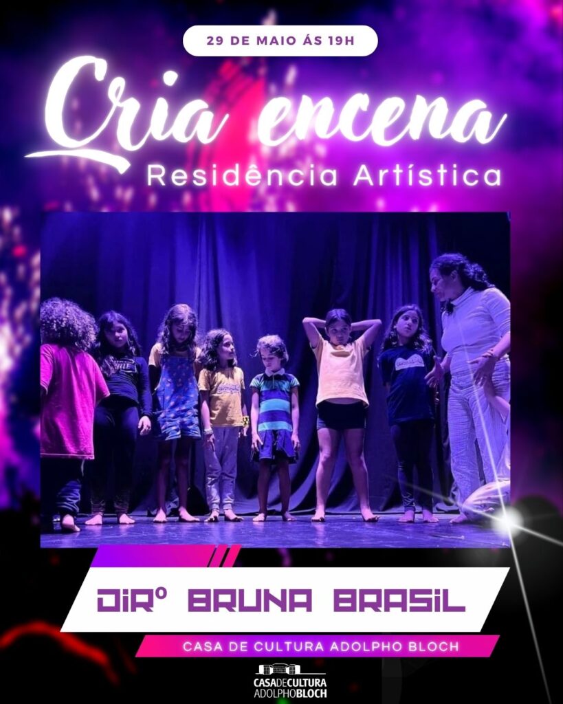 O projeto Cria Encena, Teatro para a Infância surgiu após vivências das crianças com a linguagem teatral. Ali, elas foram categóricas: queriam fazer teatro na rua, no palco, “de verdade”. Atendendo a esse chamado, a atriz e arte-educadora Bruna Brasil foi convidada a criar o projeto, que começou dentro da escola como “Colo em Cena” e, em 2025, evoluiu para uma companhia independente com residência na Casa de Cultura Adolpho Bloch, por meio de uma parceria do Ponto de Cultura Colo da Montanha com a Secretaria Municipal de Cultura.