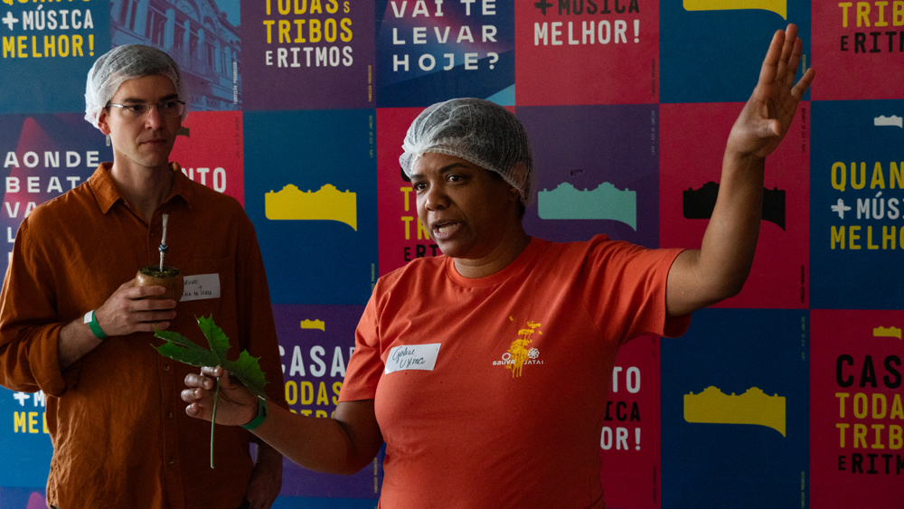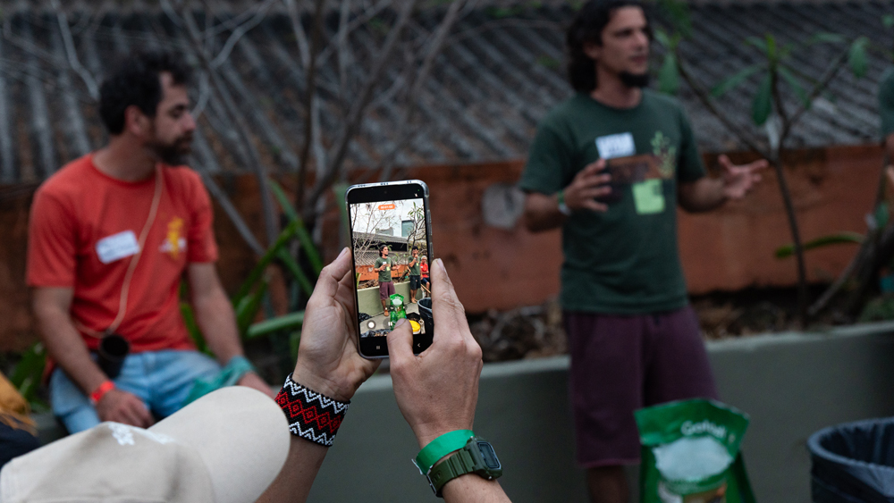 Flávia Gribel fez uma fala de encerramento ressaltando sua satisfação e gratidão por todos os momentos vivenciados no encontro e do caráter coletivo para que ele fosse tão exitoso. Leandro Almeida fez uma fala de agradecimento e contou que faz aproximadamente 15 anos que as primeiras conexões foram feitas para a construção da Saúva Jataí. Falou da sua gratidão pelas pessoas que confiaram e começaram essa história e pelo trabalho de todas as iniciativas para que a rede continue se fortalecendo, trazendo oportunidades de transformação social e significado para suas vidas.