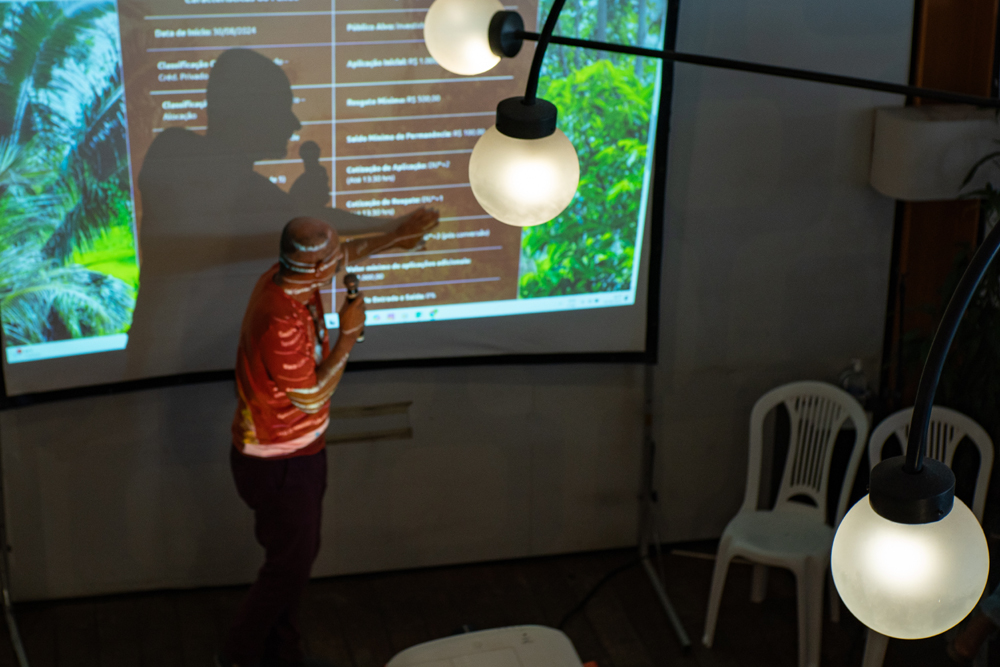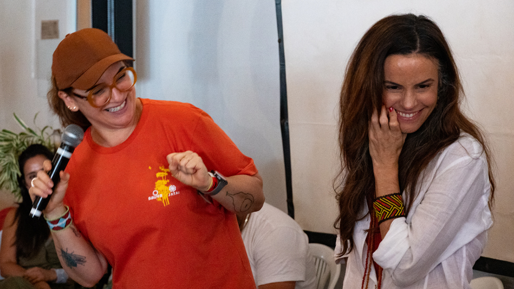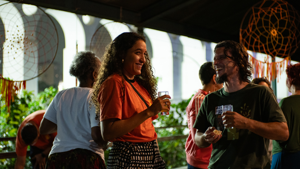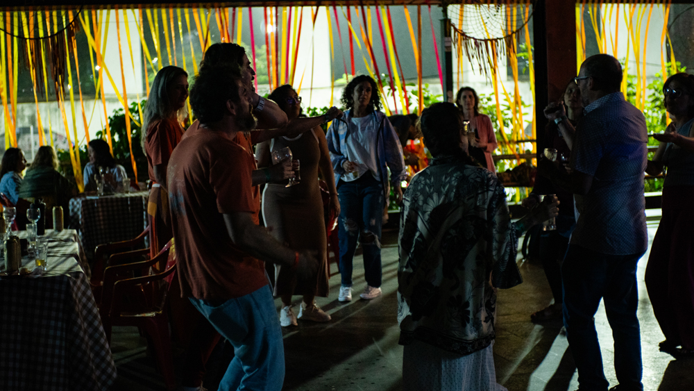 No entardecer, e como encerramento do dia, foi exibido o documentário “Nhemongarai”, com direção de Kasia Mitch e Débora Saraiva. O filme retrata e documenta o ritual Guarani do milho; o apoio da Saúva para sua distribuição coloca em prática o propósito da Saúva e da Jataí de conexão e apoio às causas indígenas como preservação da cultura tradicional. Após a sessão, tivemos um bate-papo com uma das diretoras para que as pessoas pudessem tirar suas dúvidas e curiosidades sobre o filme e os processos de produção.