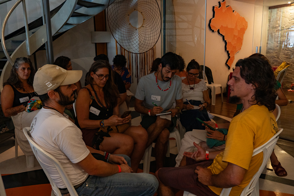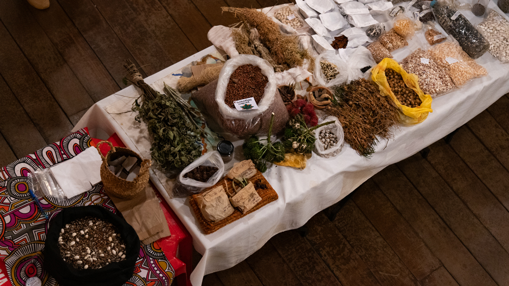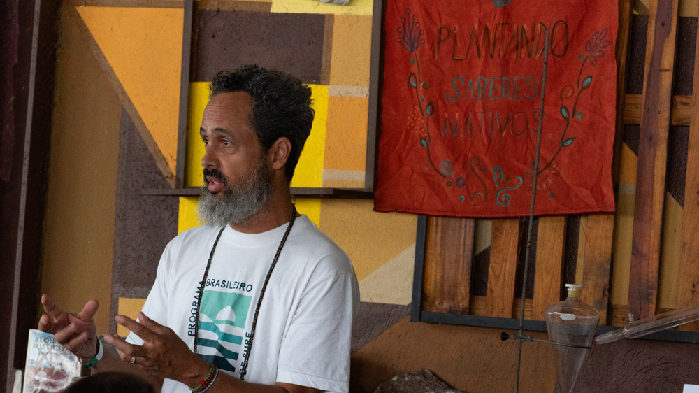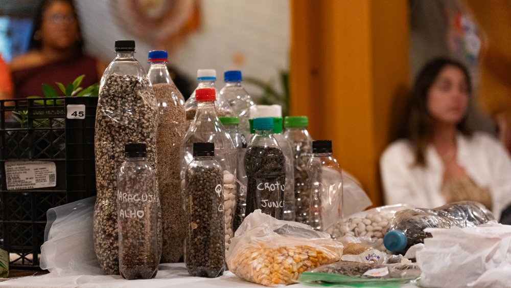 Um dos momentos mais tradicionais dos encontros é a troca de sementes entre as iniciativas, principalmente para aquelas que lidam diretamente com a produção agroecológica de alimentos. Neste ano, mais de dez iniciativas trouxeram sementes e mudas de diversas espécies, muitas delas raras. Todos puderam compartilhar as sementes e suas histórias, como sementes que vieram dos encontros anteriores e que já estavam produzindo para serem compartilhadas novamente. Um momento marcante em os valores da Saúva Jataí, como diversidade, inclusão, abundância, partilha, decolonização, regeneração, investimento no futuro e alimento saudável estavam materializados naquelas sementes dispostas numa mesa.