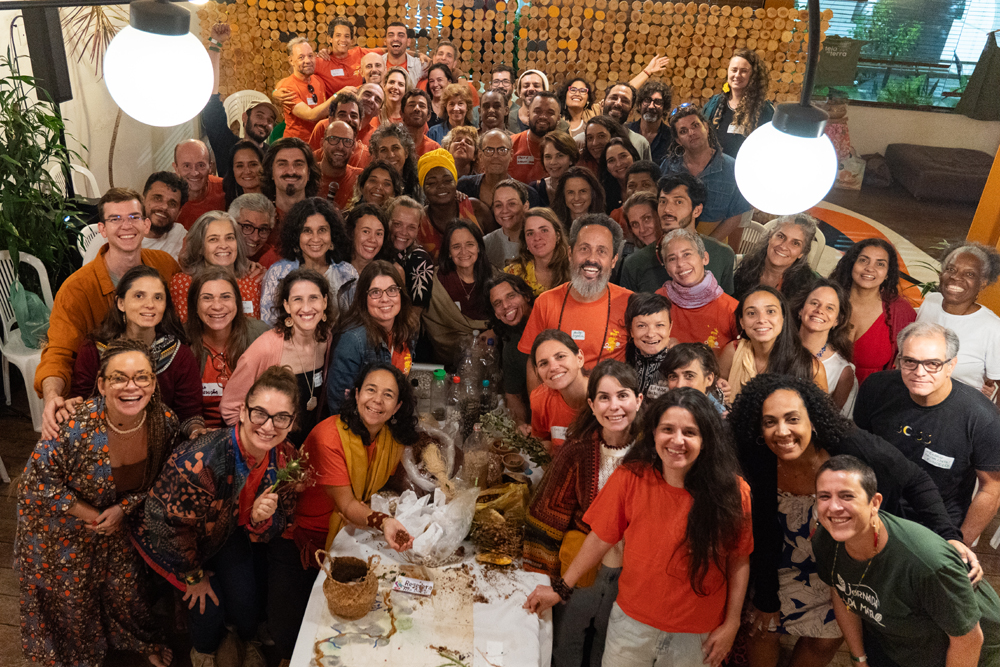 Além de reflexões filosóficas e conceituais, os participantes mergulharam numa experiência sensorial, relacional e prática que mostrou a essência disruptiva da rede: das mãos na terra na oficina agroflorestal à alquimia dos óleos essenciais; das refeições coletivas com alimentos orgânicos das hortas apoiadas pela Saúva à troca de sementes; e da compostagem conjunta de resíduos orgânicos e emocionais à leitura oracular dos desafios coletivos através do Tarô da Muda Outras Economias.