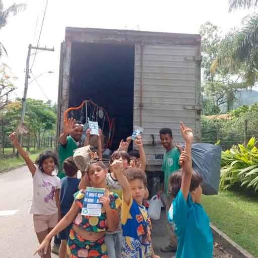 Para fechar a atividade, a turma recebeu a visita dos coletores da Eu Reciclo – Paraty (Robson e Leodson) para uma conversa sobre a reciclagem de materiais, ouvindo as dúvidas e esclarecendo as perguntas das crianças. A escultura O Peixe foi recolhida e encaminhada para a sede da cooperativa dos coletores com comemoração pela participação dos estudantes em todo o processo.