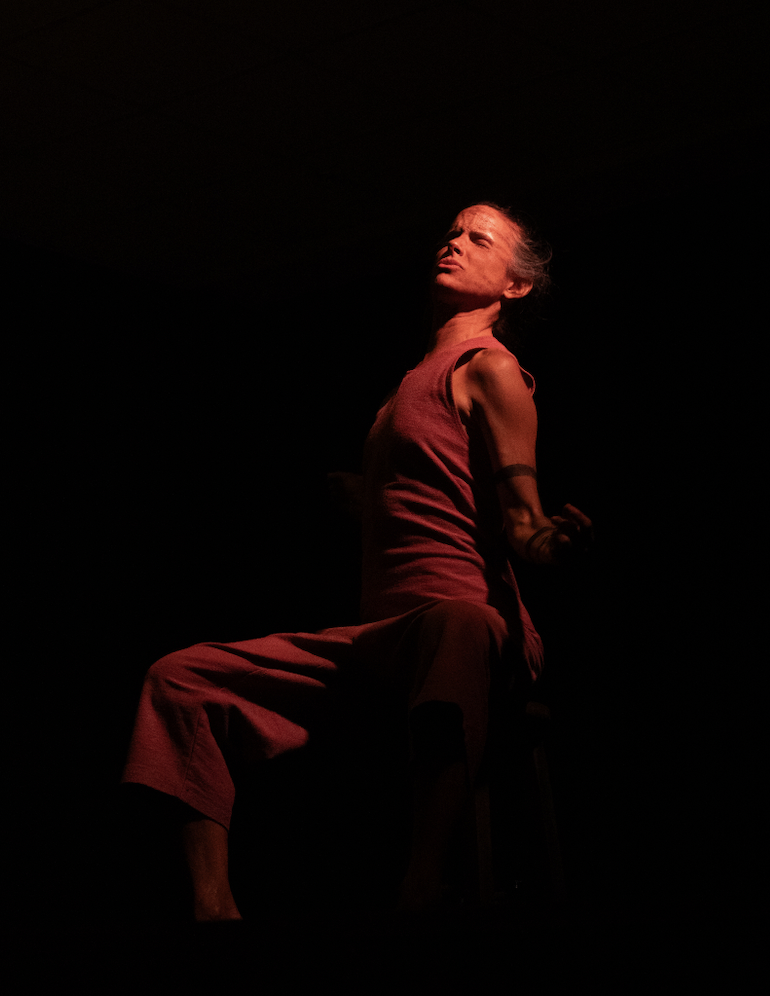 Ao anoitecer, o auditório se transformou em palco para o espetáculo “Solo da Cana“, monólogo com texto e atuação de Izabel de Barros Stewart e direção de João Saldanha, que propõe uma reflexão sobre relações coloniais, racismo e modos de habitar a Terra a partir da perspectiva de uma cana-de-açúcar.