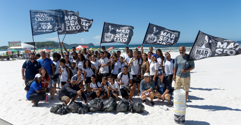 O Futuro Azul Summit não se limitou ao debate técnico, e a presença da Saúva Jataí na concepção do evento e enquanto rede se fez sentir com clareza. No primeiro dia, enquanto os painéis ocorriam no auditório principal, a manhã foi marcada por um mutirão de limpeza de um trecho da Praia do Forte, realizado pela ONG Mar Sem Lixo com apoio da Jataí e com a participação de alunos da escola estadual de Cabo Frio. Foram mais de 1000 canudinhos coletados na areia em menos de uma hora de ação, além de outros plásticos de uso único, como tampas, copos e cotonetes.