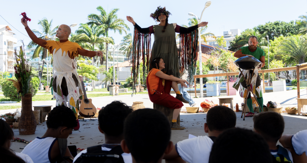 Na sequência, o Grupo Pedras, projeto fomentado pela Saúva, apresentou a peça teatral infantil “Rosa e a Floresta”, na Praça da Cidadania, em evento aberto ao público. A peça é um convite e um passeio pela floresta, em uma jornada iniciática de descobertas e apuros que aguça a força do coletivo, renova o desejo de um mundo mais justo, amoroso, com florestas de pé, de rios e mares limpos.