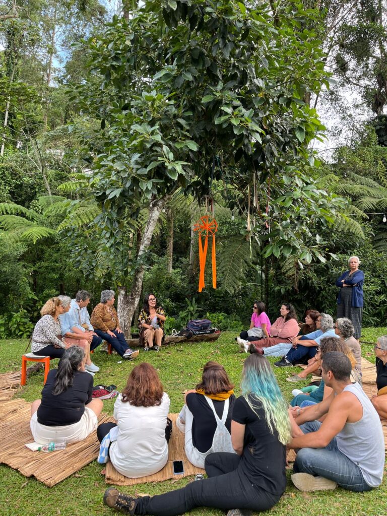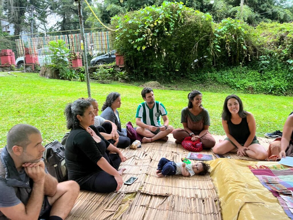 No Colo da Montanha, aprender não é destino somente de crianças – é travessia compartilhada por todos. O Ciclo 4 emerge como esse espaço singular onde adultos descalçam certezas para se manterem no caminho da aprendizagem. Mais que um projeto, é um movimento contínuo de “lapidação”: pais, educadores e apoiadores se exercitam na arte de observar sem interferir, acolher sem dirigir e existir sem pressionar ou não atrapalhar os processos individuais e coletivos de aprendizagem. Enquanto as crianças lideram seu processo educativo, os adultos trabalham uma revolução íntima – substituem a lógica do controle pela ética do cuidado, transformando a comunidade num organismo vivo onde todos, sem exceção, estão em permanente estado de descoberta. Neste laboratório de convivência, projetos como o Colo de Vó, o apoio à Cooperativa de Catadores, o Cria Encena Cia de Teatro para a Infância, as conexões com a Muda Outras Economias e o Cine Abacateiro não são meras atividades, mas expressões concretas de um princípio radical: para educar crianças autônomas, é preciso adultos dispostos a questionar seus próprios automatismos. A moeda social, as assembleias comunitárias, o contato com mulheres 60+, a experimentação cênica e as parcerias com catadores revelam o segredo dessa pedagogia viva – ninguém sabe mais que ninguém, todos aprendem e crescem juntos.