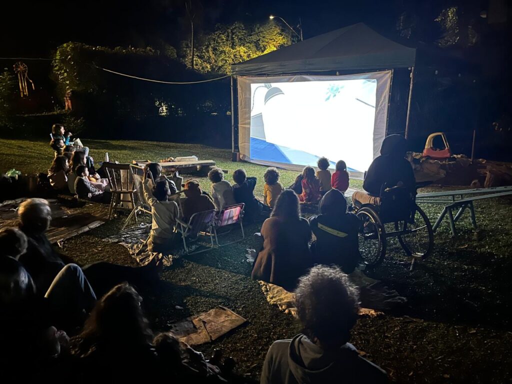 Quando o Colo adquiriu um projetor para atividades pedagógicas, a comunidade viu nele uma oportunidade de ampliar horizontes. Sob a sombra de um abacateiro centenário – que empresta seu nome ao projeto -, famílias se reúnem em cadeiras de praia para sessões que misturam clássicos do cinema com produções locais. O que começou como iniciativa de três pais (Júlia Santana, seu companheiro Tom e Fernando Aranha) transformou-se em espaço de formação de plateia. “A equipe do Colo, com ajuda de pais, ficou super animada de fazer um cineclube”, conta Sayuri. As primeiras sessões exibiram trabalhos de Fernando Aranha, especialista em efeitos sonoros para filmes, e a Ifátókí Maíra Freitas, demonstrando o potencial artístico da comunidade. Um projeto futuro é levar o documentário de Pablo Lobato, “Oroboro”, para ser exibido no Cine Abacateiro.
