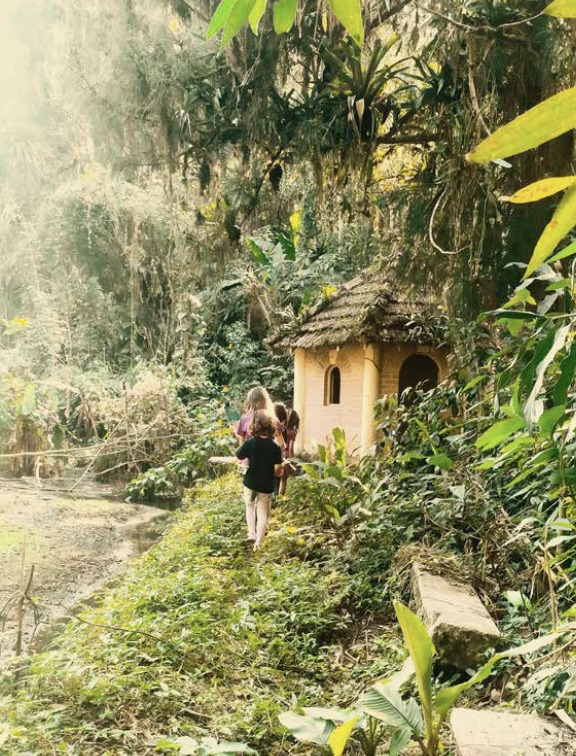 Quando o grupo começou a desenhar o mapa coletivo, as espécies de plantas nativas, os ninhos de passarinho e as estruturas de bambu apareceram muito antes da própria casa. Não foi uma escolha deliberada, para eles, o entorno natural era mais relevante do que a construção.
